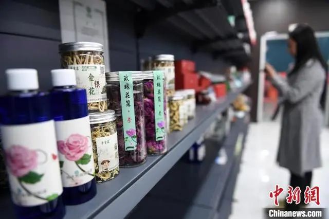 4月29日,游客在阜城县王集乡河北阜云农农业发展股份有限公司选购玫瑰花系列产品。中新社记者 翟羽佳 摄